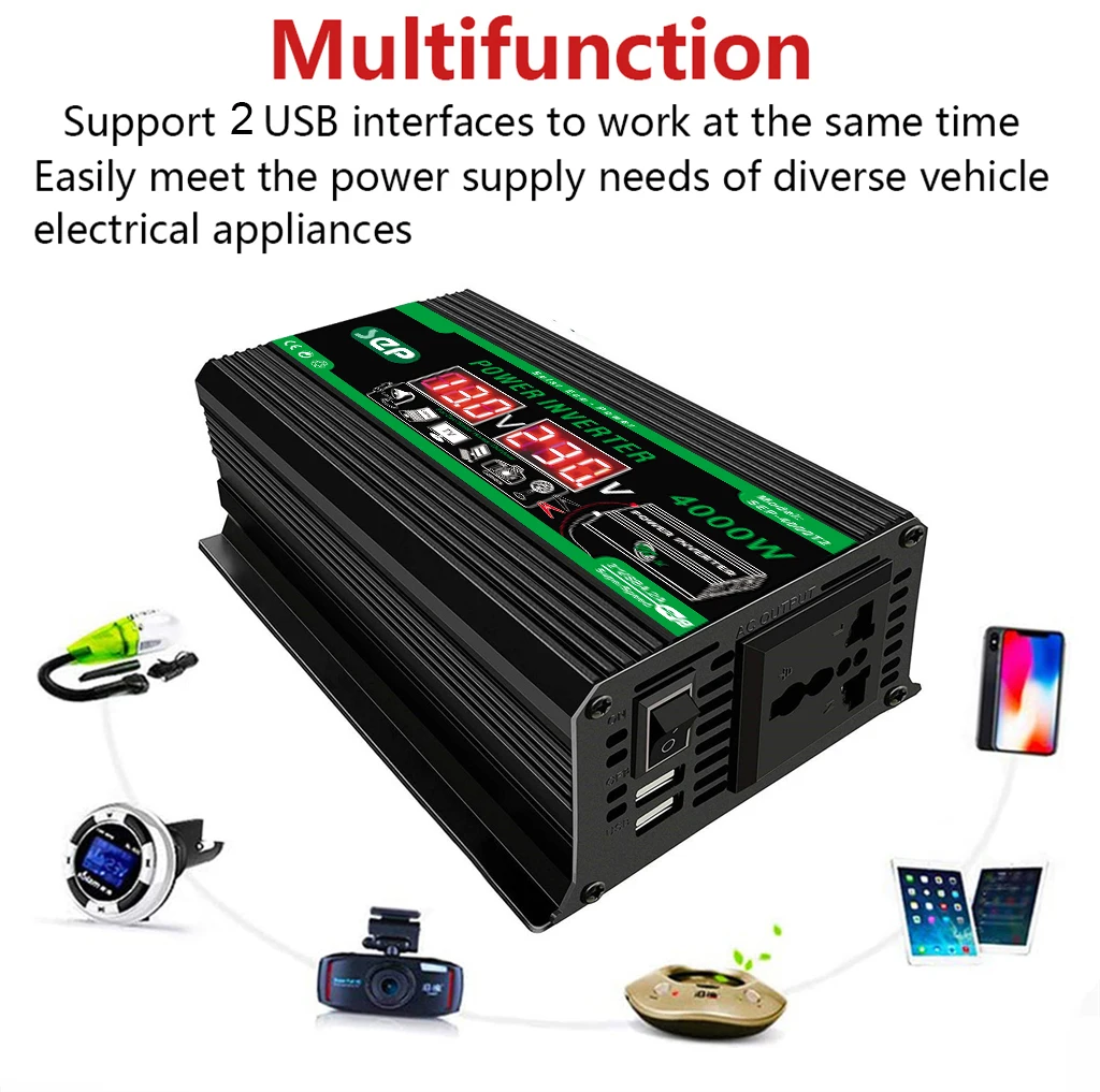 4000W Dual Digital LCD Display Solar Inverters DC 12V to AC 110V 220V Portable Power Bank Car Converter for Camping RV