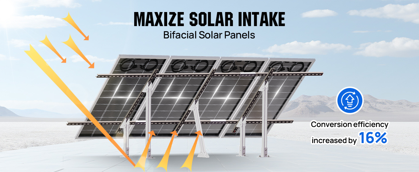 Con conducción de 2 ejes y sensor de luz solar sensible, el rastreador solar puede girar 270 ° y hacer que los paneles absorban la irradiación solar desde los lados norte, sur, oeste y este.