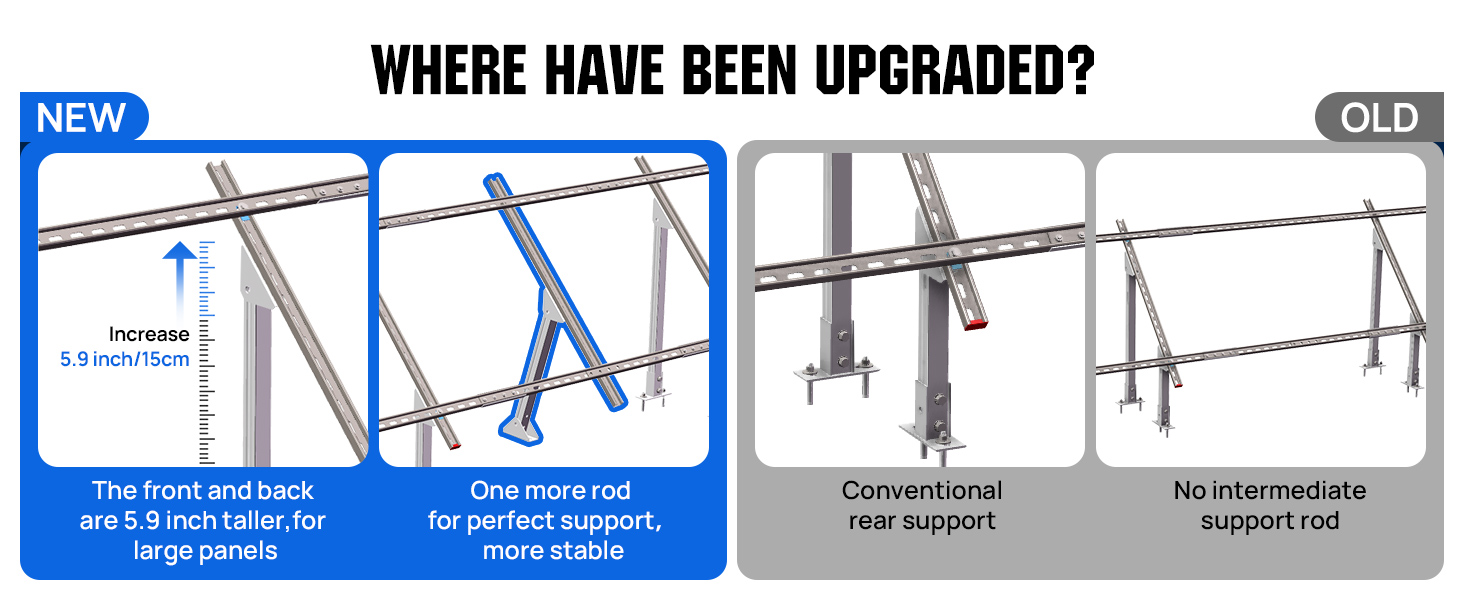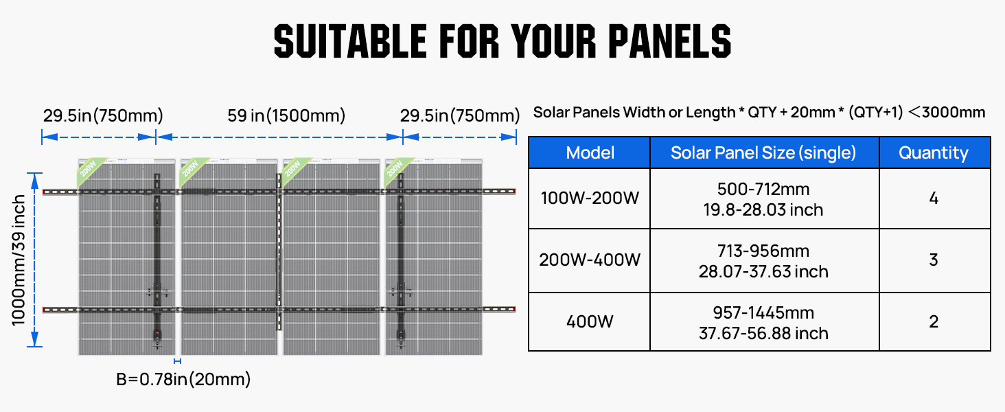 El montaje multipaneles ECO-WORTHY tiene la capacidad de adaptarse a paneles ECO-WORTHY de diferentes tamaños de 1-4 piezas u paneles estándar de otras marcas